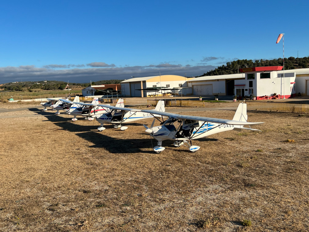 Lagos Aerodrome 2km from the centre of Lagos in Portugal has a tarmac runway and 320 flying days per year. Our flexwing training aircraft is the Quantum912 and 3 axis microlight for training is in one of our three C42 Ikarus aircraft. We offer intensive training packages of up to 20 hours in two week blocks throughout the year.